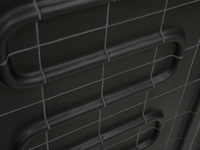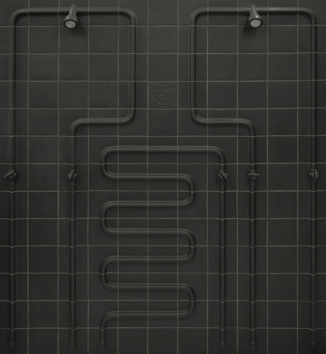 The Cover-Tiles concept came from the idea of exposing the insides of the wall on an esthetic way. The pipes, connections and water taps which are normally enclosed in the wall are now all visible on the outside. They show the way waterlines run under the tiles and how the raw technical system of water lines, taps, showerhead and connections work and look like. The series exist out of 5 different 15 x 15 ceramic tiles which cover the installation underneath. Straight tiles, curved tiles, wall plate tiles, water tap tiles and showerhead tiles. The set also includes a manual for cutting and bending the pipes at the right length so you are free to use the tiles in any wanted way you wish.