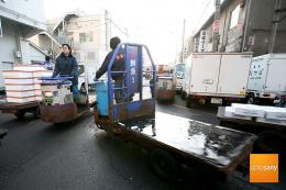 츠키지시장의 또하나의 명물. 우리나라의 경운기와 같은 운송수단이다.