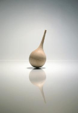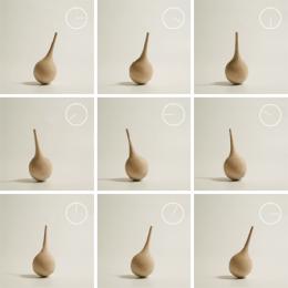 We wanted to express the idea of "feeling the time", not "measuring the time". It can be shown from revolving slowly on its own axis once every hour with an ambiguous change in its inclination. And we used the preciseness of a Japanease craftman technique to make this delicate shape to revolve smoothly.