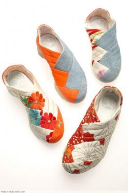 These exquisite looking PUMAs are called the Yutori Kimono. They are inspired by the traditional style of the Japanese Geisha and are made from real kimono dress fabric found in vintage shops throughout Japan. The bright, elegant, one-of-a-kind fabrics create distinctive folds on the shoes reminiscent of folds in a kimono. The back is collapsible allowing the style to be worn as a slip-on shoe or a slide.