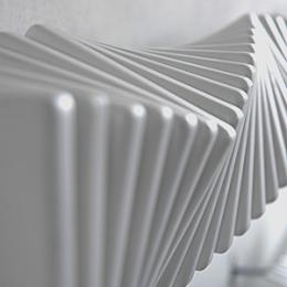 Die Rotation des Einzelelementes erinnert an die Blechspirale alter Radiatoren.